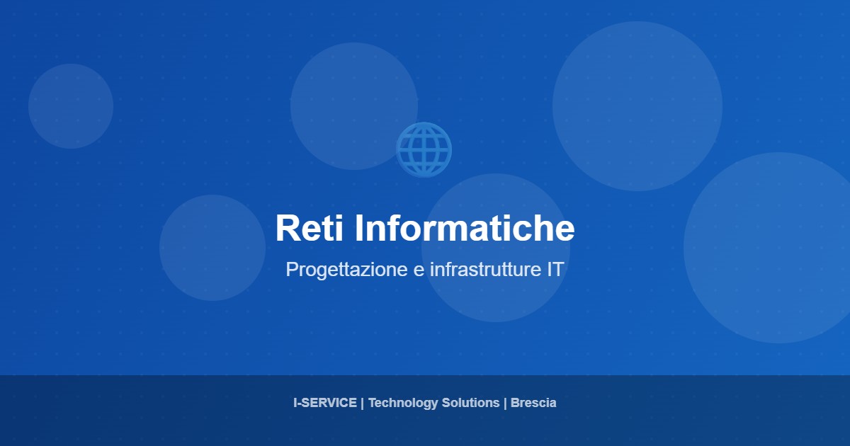 I-Service progetta e realizza infrastrutture di rete per aziende di ogni dimensione nella provincia di Brescia. Dalla consulenza iniziale al cablaggio strutturato, dalla configurazione degli apparati di rete al monitoraggio continuo, offriamo un servizio completo per reti performanti e sicure.